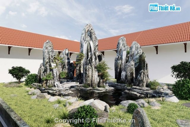 Sau khi đã thiết kế xong thì bắt đầu tiến hành mua nguyên vật liệu như đá, xi măng, cát, sắt,…để tiến hàng vào làm giúp kết nối các khối lại, xây hồ, bể cạn, …
